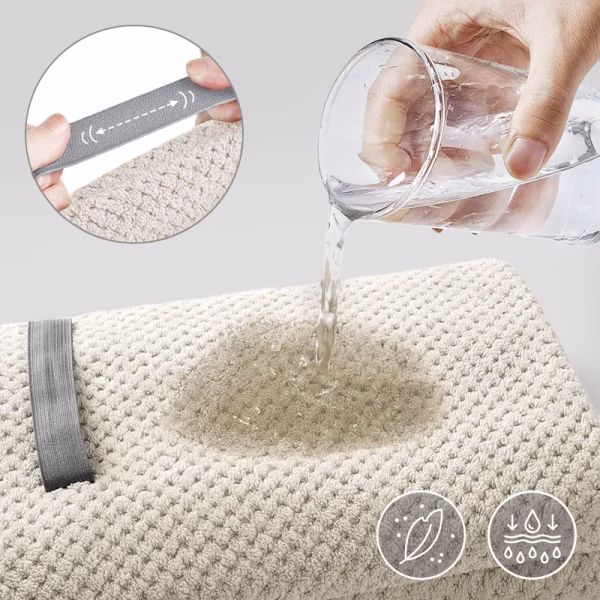 Geen druppels meer op mijn kleren! Ik vind het geweldig hoe deze handdoek water zo snel opneemt. Ik neem hem zelfs mee naar de sportschool na het sporten.
