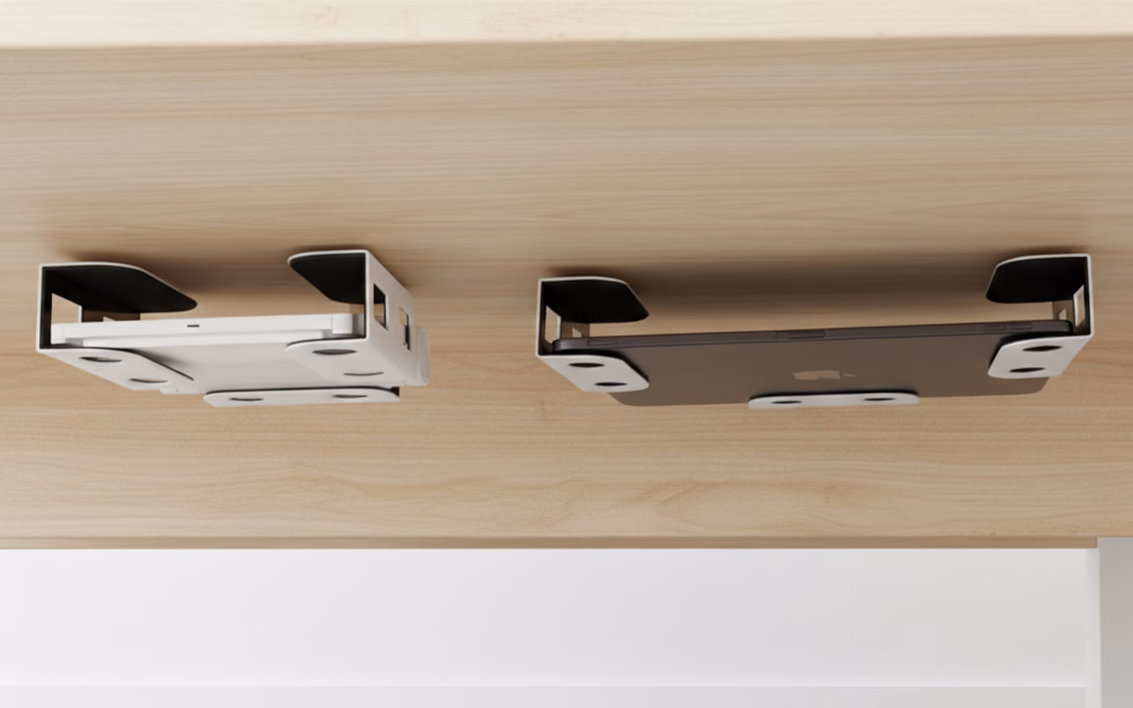 Past eenvoudig onder bureaus voor laptops, kleine computers en tv-boxen. Flexibele maatvoering past zich snel aan verschillende vormen of merken aan.