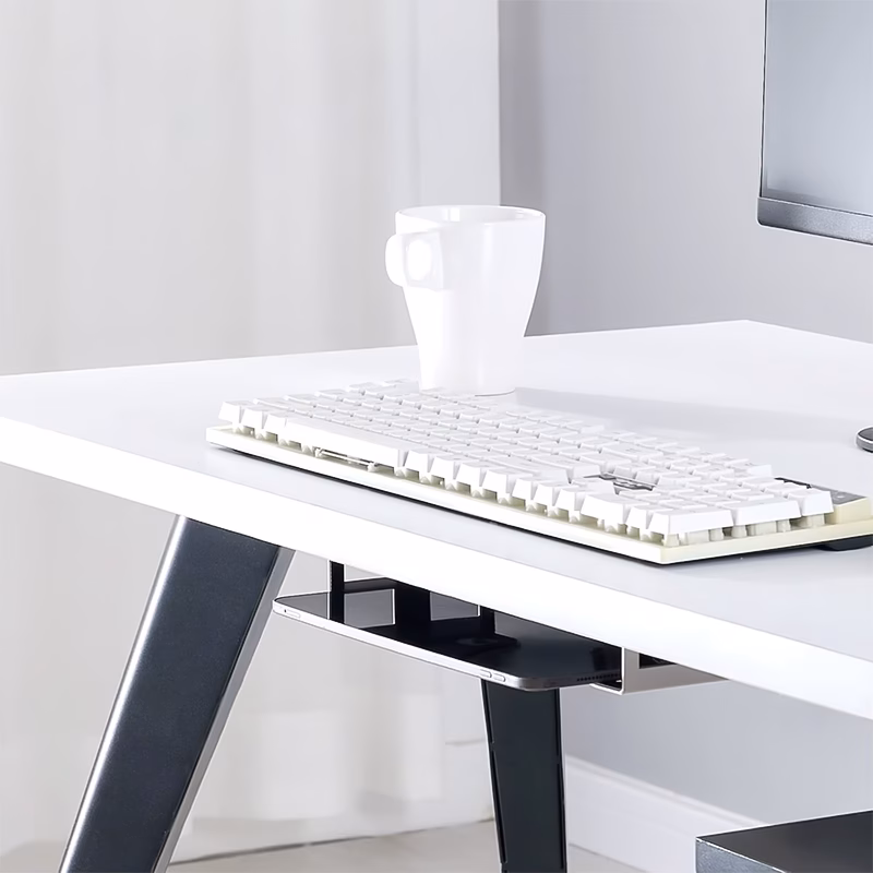Past eenvoudig onder bureaus voor laptops, kleine computers en tv-boxen. Flexibele maatvoering past zich snel aan verschillende vormen of merken aan.