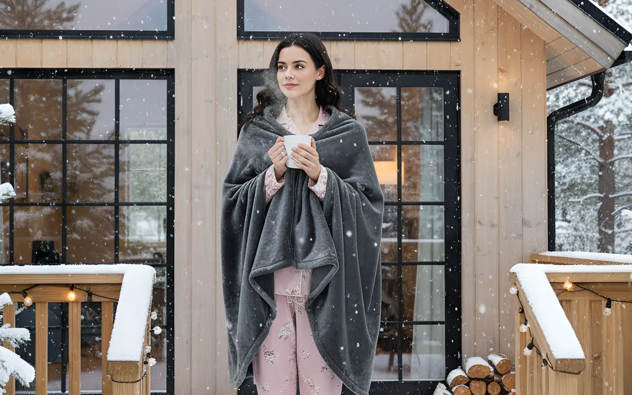 Draag de Ortorex verwarmde deken binnenshuis, in de auto of buiten. Dankzij USB‑voeding hoef je je nooit zorgen te maken over een stopcontact in de buurt.