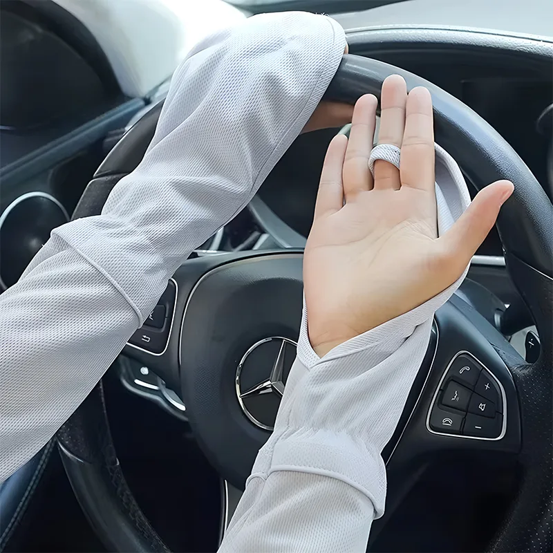 Hou van de zonmouwen! Ze passen perfect en blijven op hun plaats. Nooit meer zweetproblemen en ze houden me koel.
