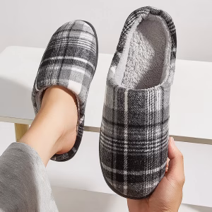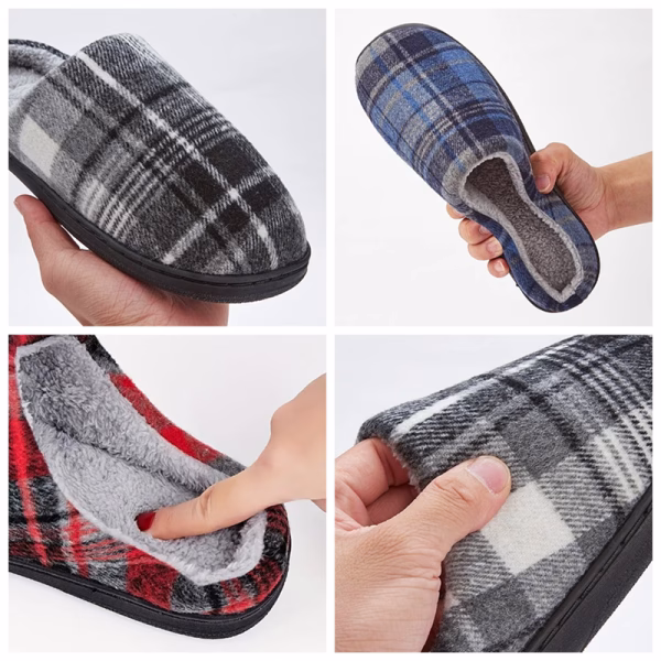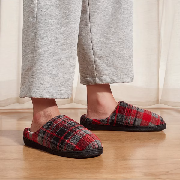 Het dragen van deze geruite pantoffels na het werk is heerlijk. Zacht van binnen, super makkelijk aan te trekken, en mijn hielen voelen nu volledig ontspannen.