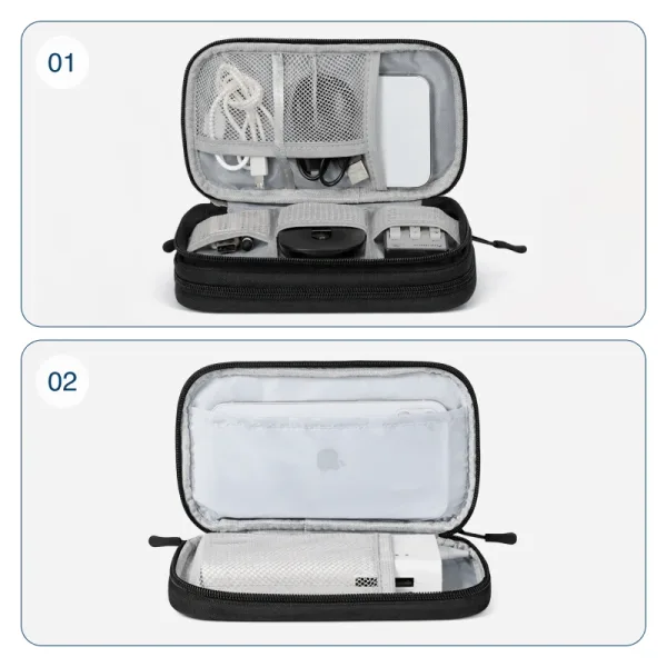 Ik gooide het tasje in mijn tas op een regenachtige dag en mijn telefoonoplader bleef droog. Nooit meer zoeken naar oordopjes of USB-sticks op de bodem van mijn tas!