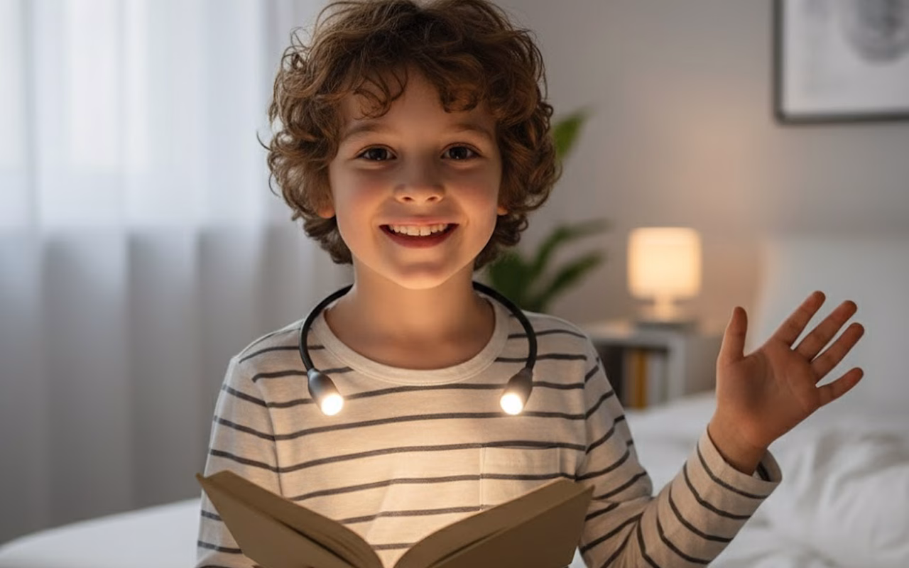 Deze neklamp maakt ’s nachts lezen zo gemakkelijk! Mijn handen zijn vrij en ik vind het leuk om de lichtkleur aan te passen aan mijn stemming.