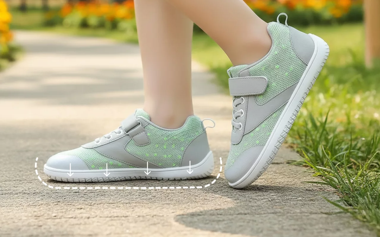 De Ortorex barefoot schoenen dempen de schok, waardoor de druk op hielen en tenen vermindert. Ze houden kleintjes comfortabel tijdens het wandelen, zelfs op harde stoepen.
