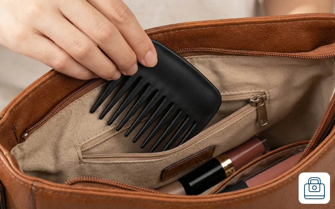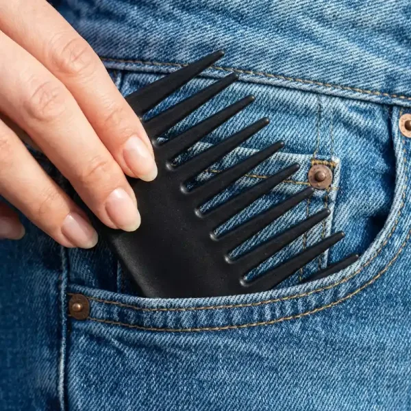 Ik neem deze pocketkam nu overal mee naartoe. Hij past precies in mijn spijkerbroek en haalt knopen eruit zonder te trekken. Superzacht en blijft nooit haken in mijn krullen!
