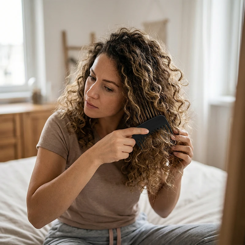 Ik neem deze pocketkam nu overal mee naartoe. Hij past precies in mijn spijkerbroek en haalt knopen eruit zonder te trekken. Superzacht en blijft nooit haken in mijn krullen!