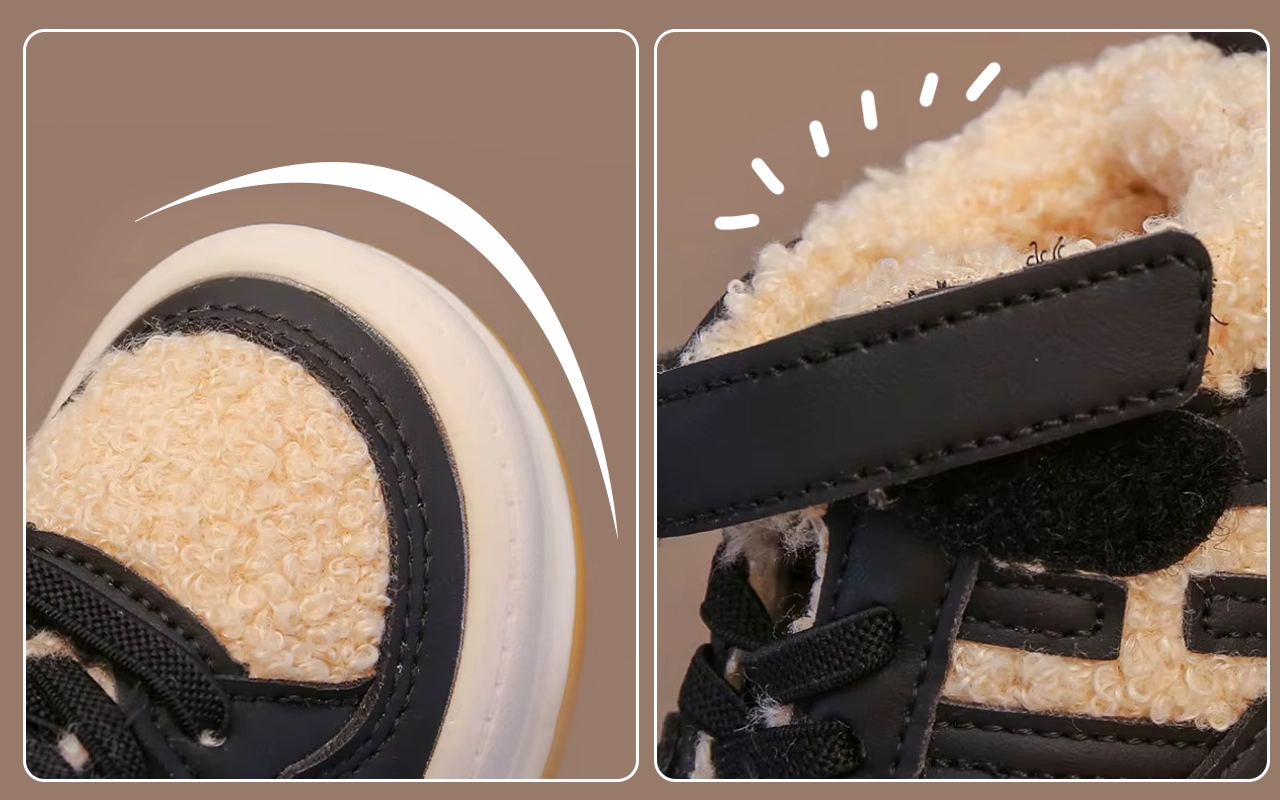Zachte pluche binnenkant houdt warmte vast en beschermt tegen ijzige wind. Spelen blijft leuk omdat tenen nooit koud aanvoelen.