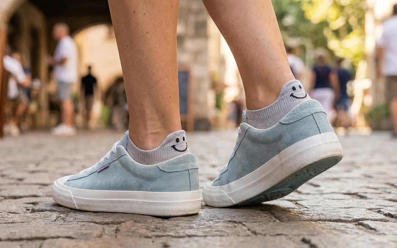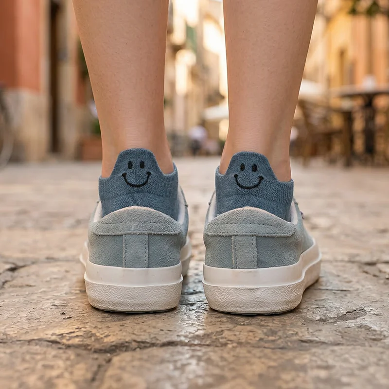 Ik draag deze met mijn sneakers naar de sportschool en voor boodschappen. Ze zakken niet af, mijn tenen blijven fris en het kleine smiley-gezichtje laat me glimlachen.