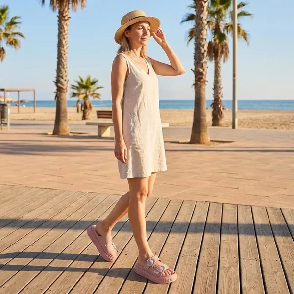 Glijd gemakkelijk in totale verlichting op elke warme dag buiten. Elk paar houdt uw voeten blij van de ochtendwandeling tot het avondplezier. Geen vermoeide voetbogen of knellende tenen meer. Geniet van vakanties, winkeluitjes en tuinwandelingen zonder pijn.