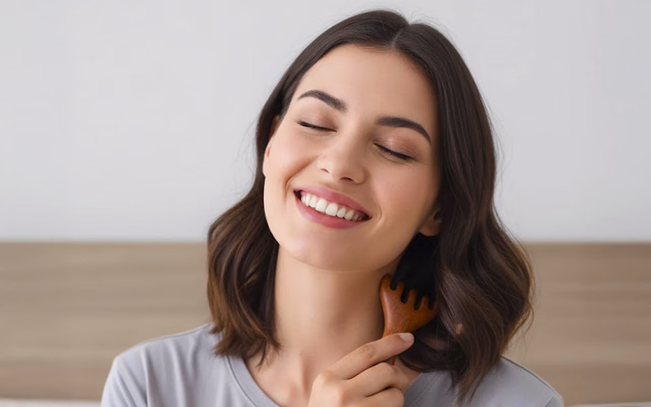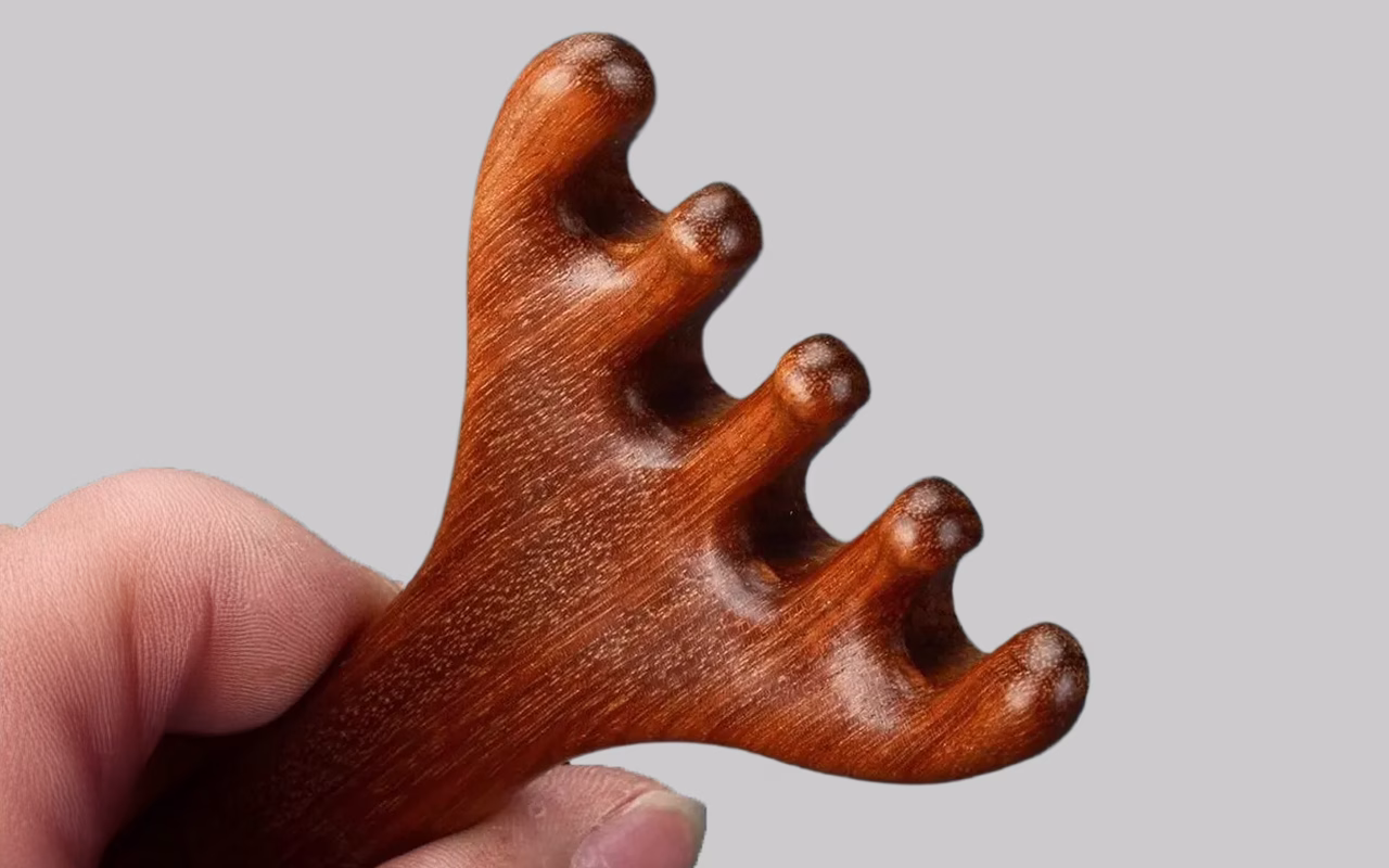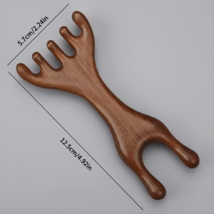 Ik gebruik hem na het sporten om te ontspannen. De tanden zijn afgerond en zacht, en ik vind het fijn dat hij van echt hout is en niet van plastic.