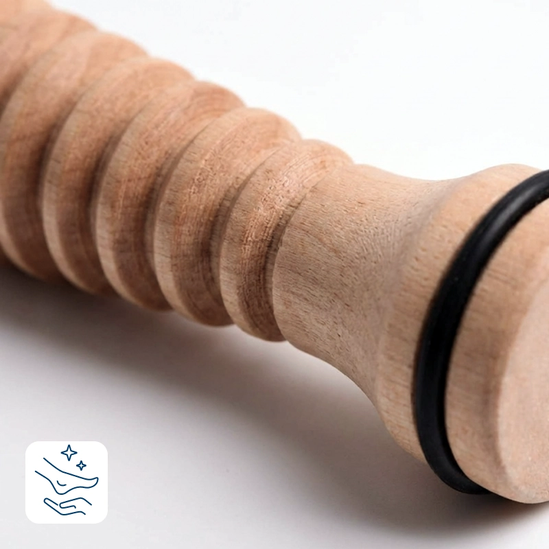 Ik bewaar deze houten roller onder mijn bureau en gebruik hem tijdens werkgesprekken. Hij verzacht mijn hielpijn en laat mijn voeten warm en ontspannen aanvoelen.