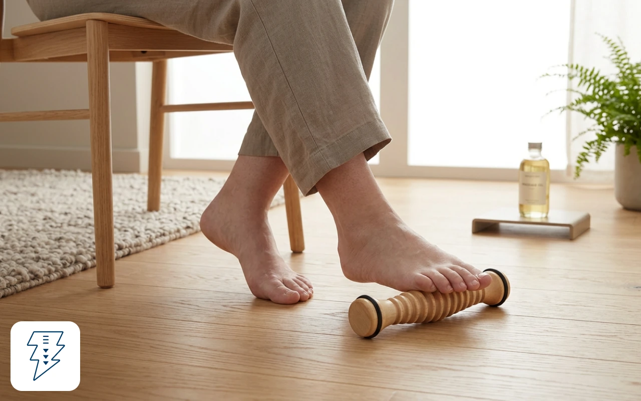 Ik gebruik de roller terwijl ik op de bank lees. Het is vreemd rustgevend, bijna als een kleine massage, en mijn voeten blijven daarna warm en soepel.