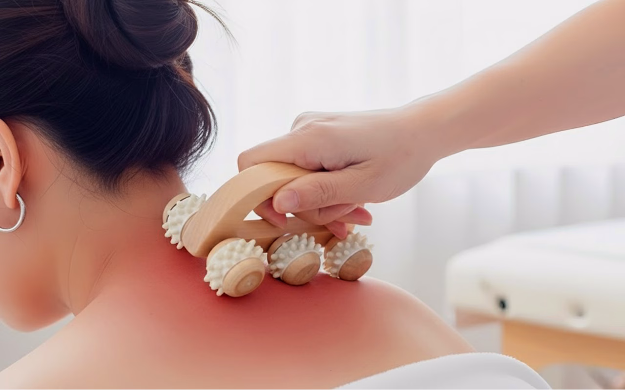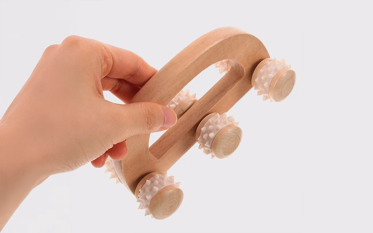 Milieuvriendelijke houten constructie betekent dat er geen harde plastics de huid aanraken. Zachte siliconen punten maken elke sessie ontspannend en veilig.