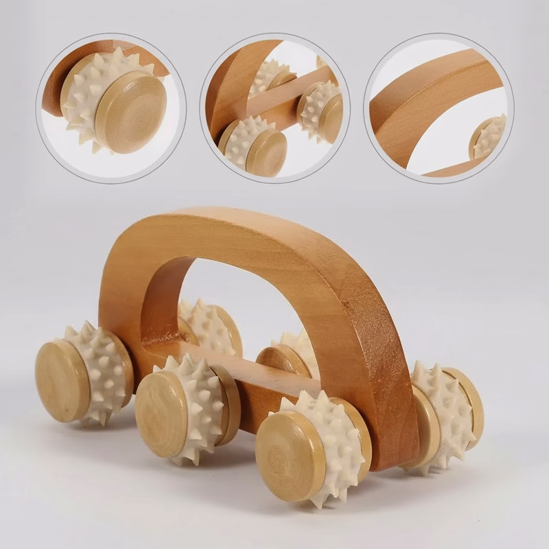 Milieuvriendelijke houten constructie betekent dat er geen harde plastics de huid aanraken. Zachte siliconen punten maken elke sessie ontspannend en veilig.