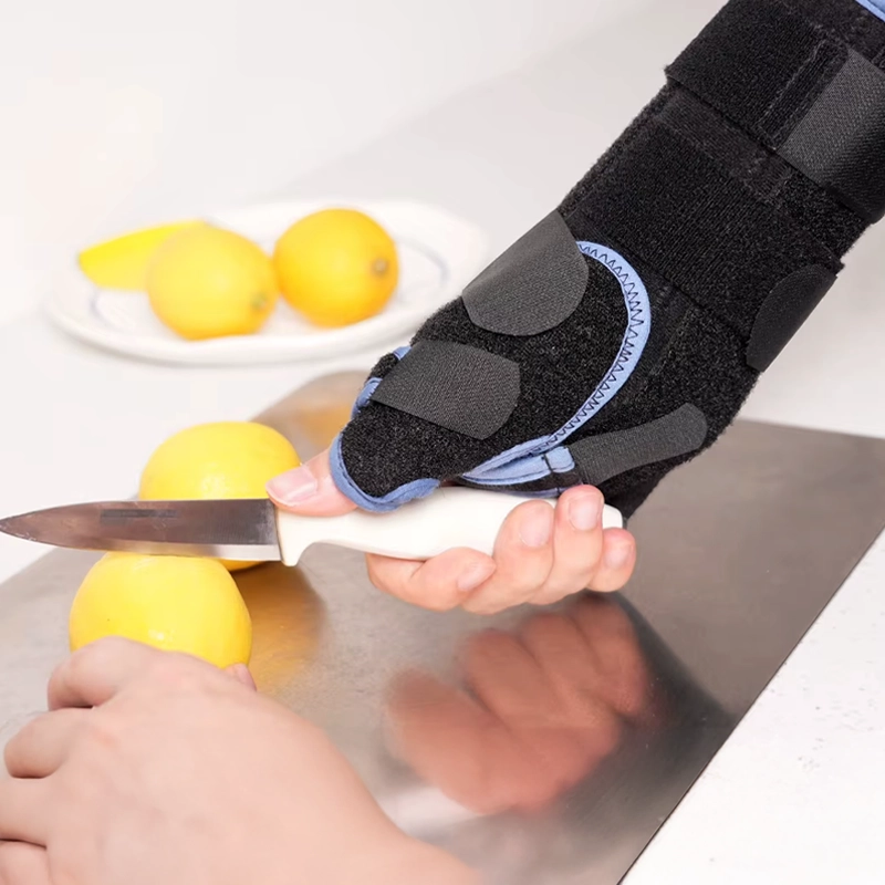 Ik heb andere geprobeerd, maar deze knijpt mijn hand niet op een rare manier. De bandjes zijn makkelijk vast te maken en mijn duim voelt goed ondersteund. Ziet er simpel uit, maar werkt super.